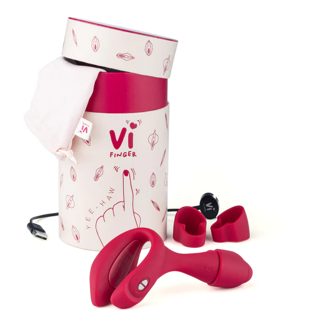 Der Fingervibrator “ViFinger” kann an der Hand und am Finger befestigt werden und bringt so eure Finger zum Vibrieren. Es ist damit möglich, den Körper mit der Haut, also dem Finger und nicht direkt mit dem Toy, zu berühren. Das Toy ist so konstruiert, dass es nicht gehalten werden muss, sondern fest an der Hand und den Fingern sitzt. Dadurch ist es auch für Personen geeignet, für die es schwierig ist, etwas festzuhalten. Die Aufsätze, die um den Finger herumgehen, können aus drei Größen gewählt werden und der Part, der um die Hand liegt, ist flexibel einstellbar.