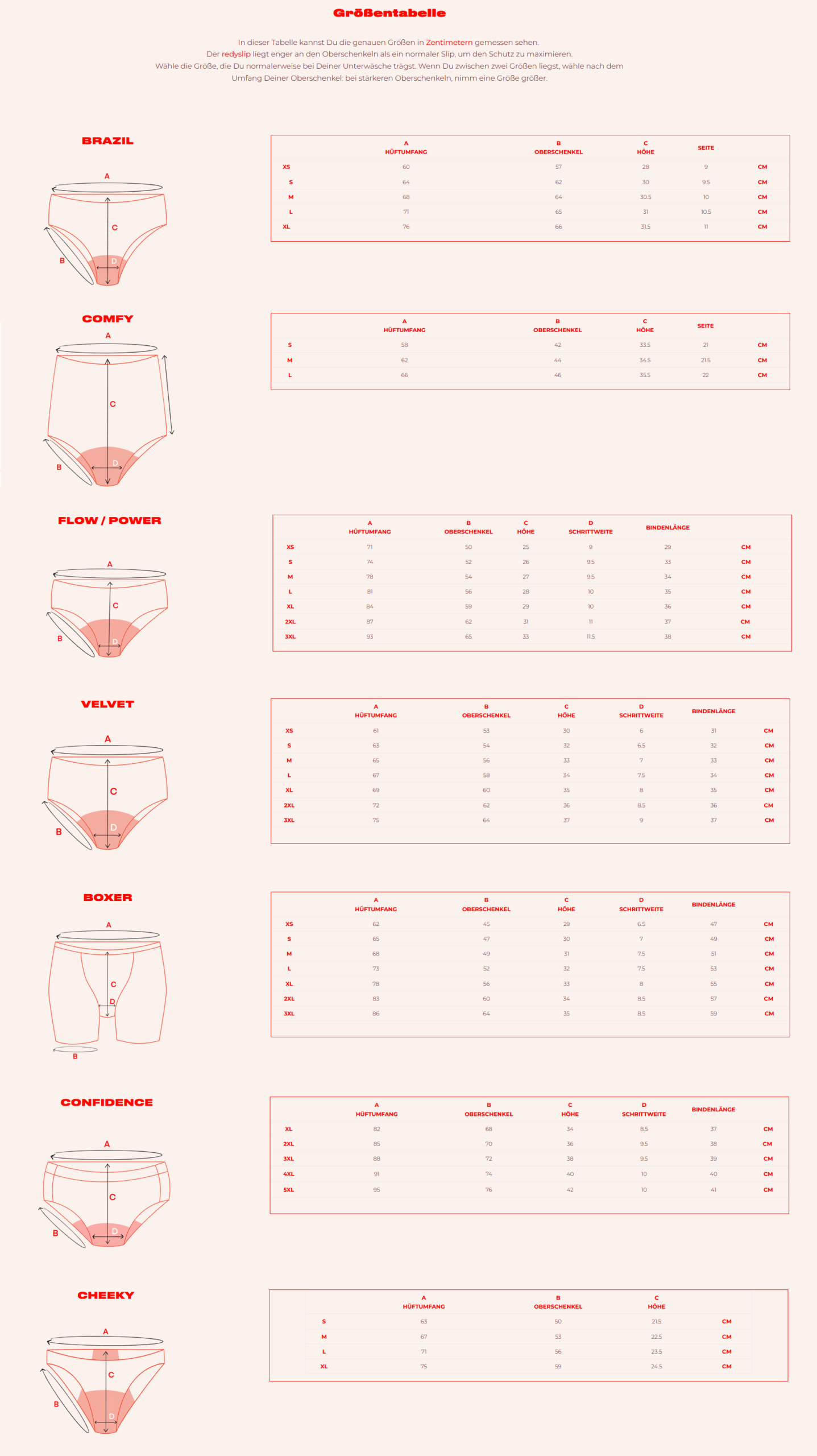 Dieser Slip hat die Absorptionsfähigkeit von 3-4 normalen Tampons. Das bedeutet, dass Du ihn bis zu dieser Menge nicht wechseln musst. Normalerweise muss er nur morgens und abends gewechselt werden. Bei noch stärkeren Blutungen wird er als Zusatz getragen. Oft wird der Slip auch zusammen mit einem Tampon getragen und wenn der Tampon voll ist, kann man sich auch ruhig auf den Redy Slip verlassen.