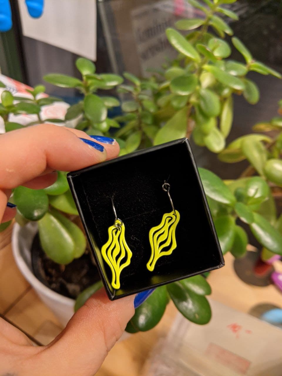 Vulva-Ohrring von der Schmuck- und Fashion-Designer*in Luise Zücker aus Berlin. Die Farbe knallt in echt mehr, als auf den Bildern 🙂