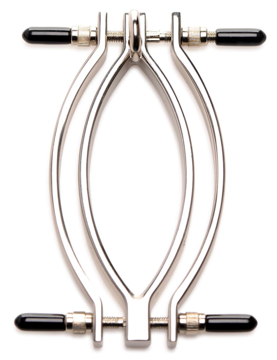 Diese Klemme kann auf die äußeren Vulvalippen gesetzt werden. Verwendet die kleinen Schrauben auf beiden Seiten der Klammer, um den für euch perfekten Druck einzustellen. Jede Schraube ist mit einer kleinen PVC-Kappe für zusätzlichen Komfort bedeckt. Ergänzend dazu könnt ihr die Kette anbringen, um die Empfindungen zu intensivieren, wenn daran gezogen wird. Für zusätzliche Reize könnt ihr die Klemme vor Gebrauch erwärmen oder kühlen.